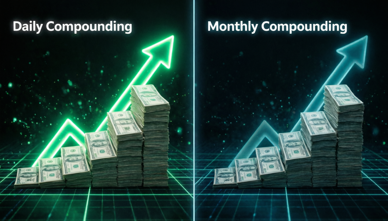 Daily compounding gives slightly higher returns than monthly.